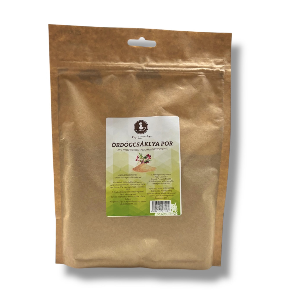 Az ördögkarom természetes gyógymód, melyet már évezredek óta használnak az ínszalagok, inak, ízületek védelméért, gyulladás- és fájdalomcsillapítóként. Nagyon népszerű, rengeteg készítmény tartalmazza, viszont természetes formájában a Dog Vitality Barf ördögcsáklya por hatékonyabb. Az inak, ízületek, porcok, csontok egészségének támogatásával megőrzi az ízületek rugalmasságát, mobilitást. Az egyik leghatékonyabb gyulladás- és fájdalomcsillapító.