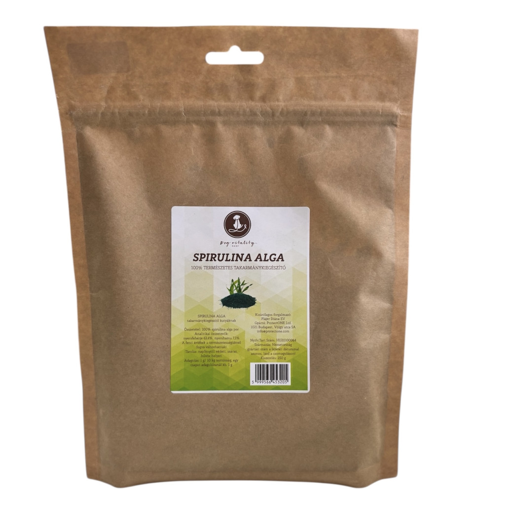 Ez a kiváló minőségű spirulina bio minősítéssel rendelkezik, így mentes a nehézfémektől, közvetlenül a vízparton szárítják, így kiváló minőséget biztosít kedvencednek.